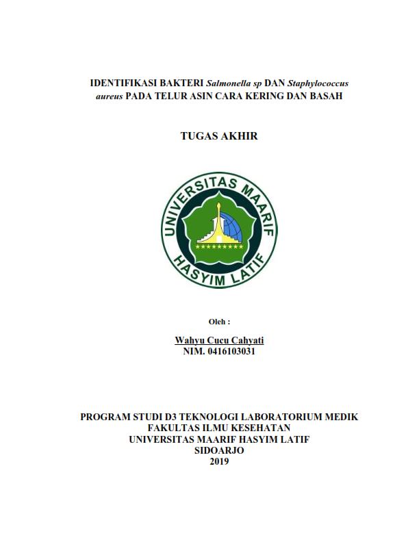 Kata kunci : Telur asin, Staphylococcus aureus, Salmonella sp