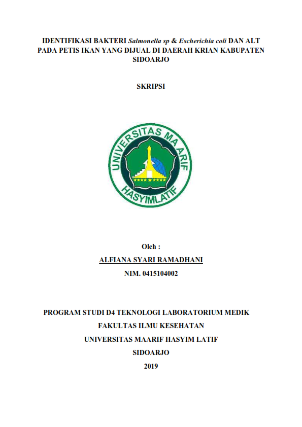 Kata Kunci : Petis ikan, ALT, Salmonella sp, Escherichia coli