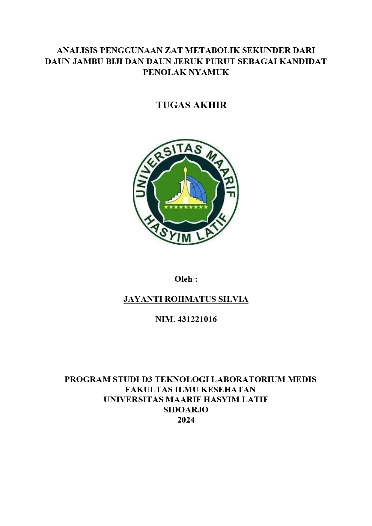Kata kunci: daun jambu biji, daun jeruk purut, nyamuk Culex sp.
