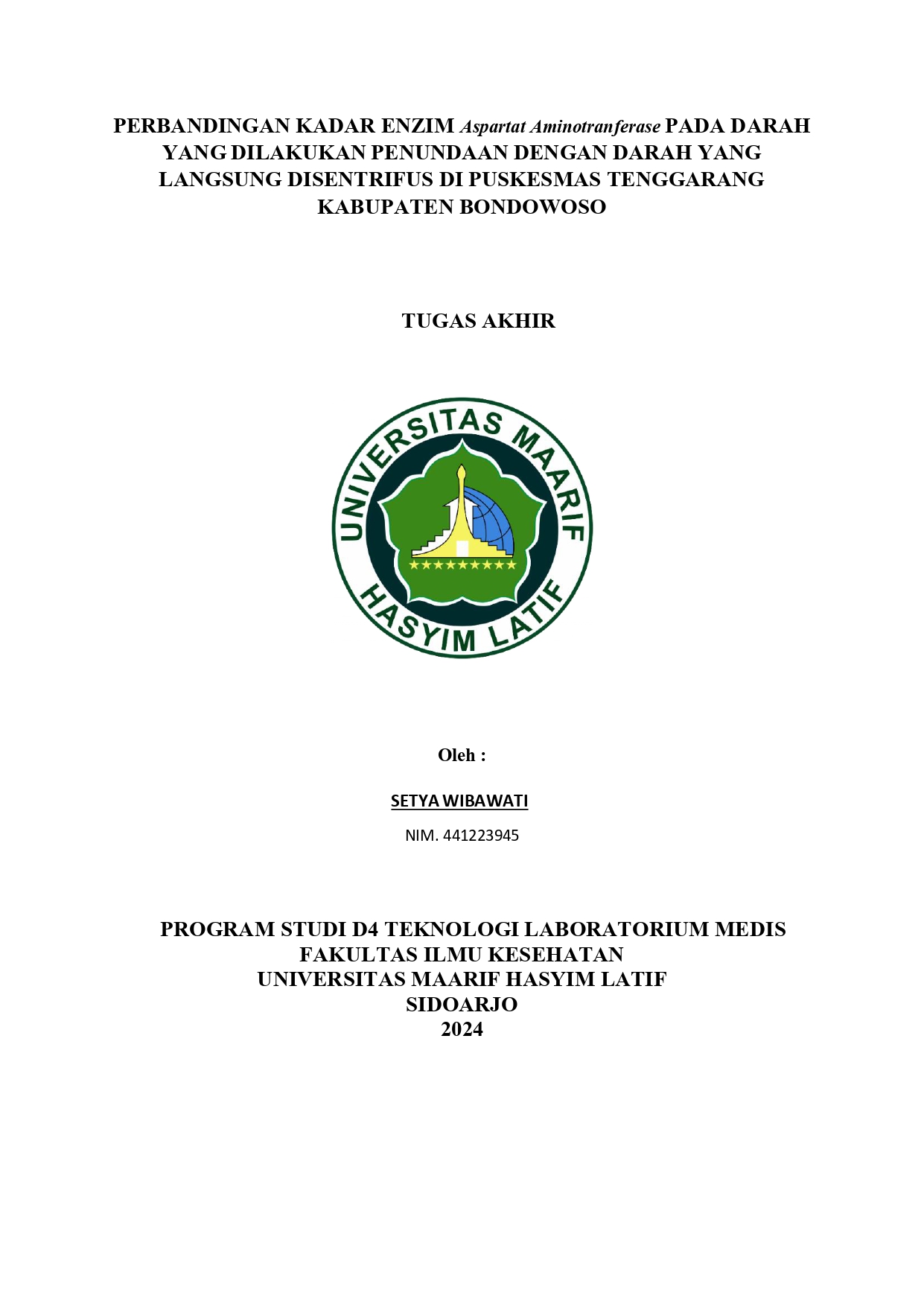 TUGAS AKHIR D-IV TEKNOLOGI LABORATORIUM MEDIS