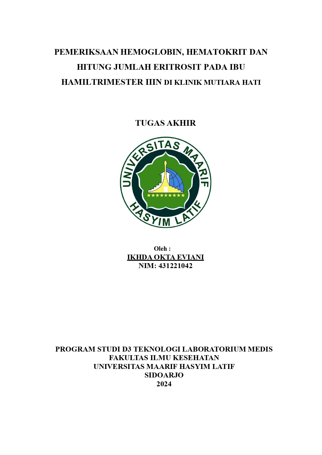 Kata Kunci : Anemia, Hemoglobin, Hematokrit, Hitung Jumlah Eritrosit