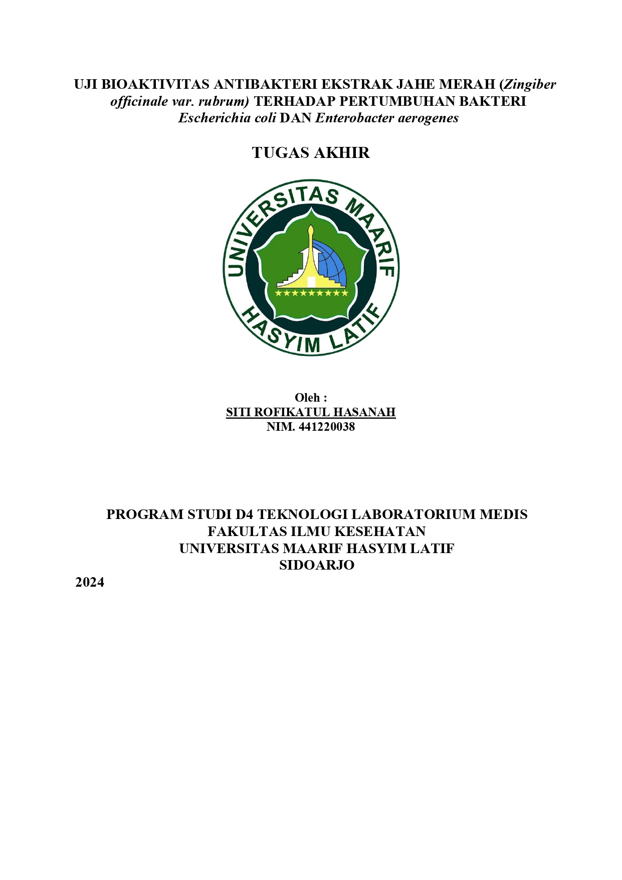 Kata kunci : Escherichia coli, Enterobacter aerogenes, jahe merah, bioaktivitas antibakteri