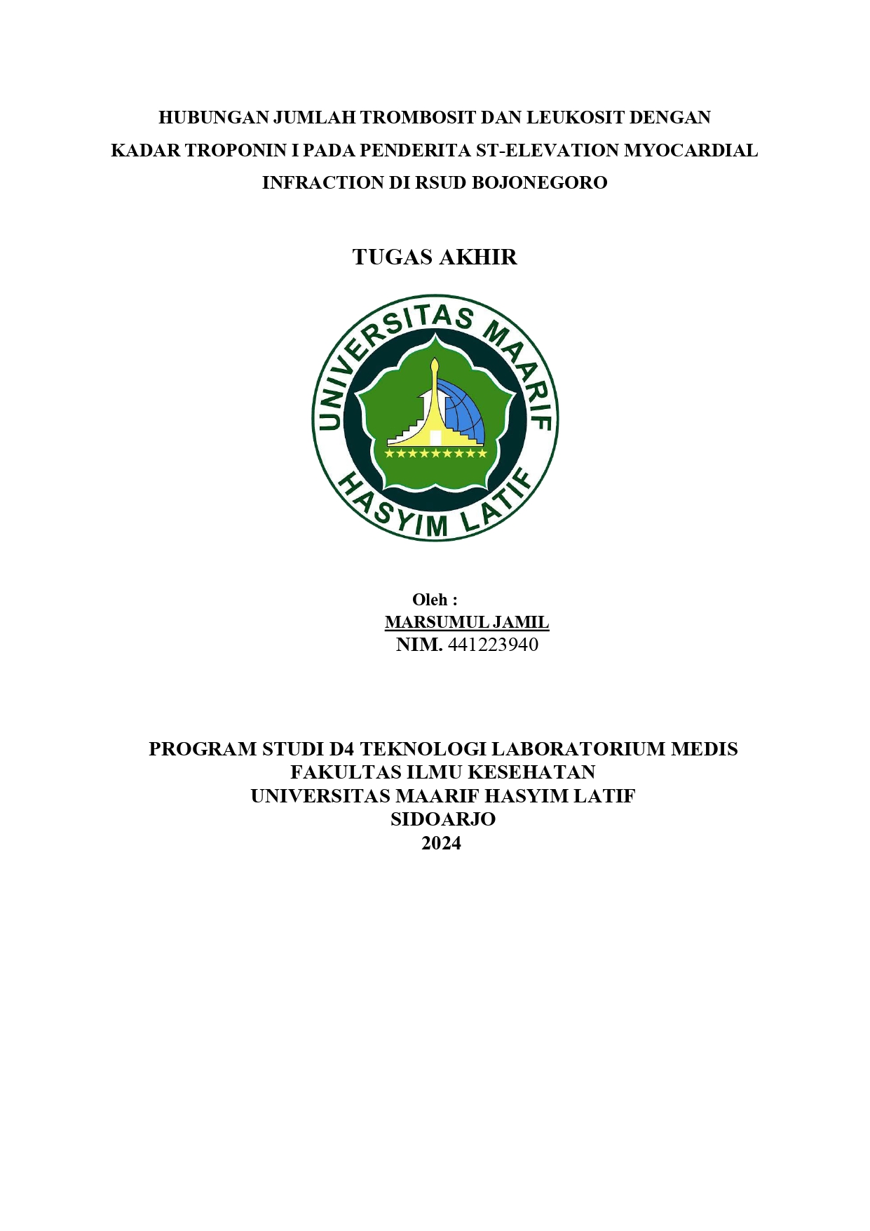Kata Kunci : Trombisist, Leukosit, Troponin I, STEMI