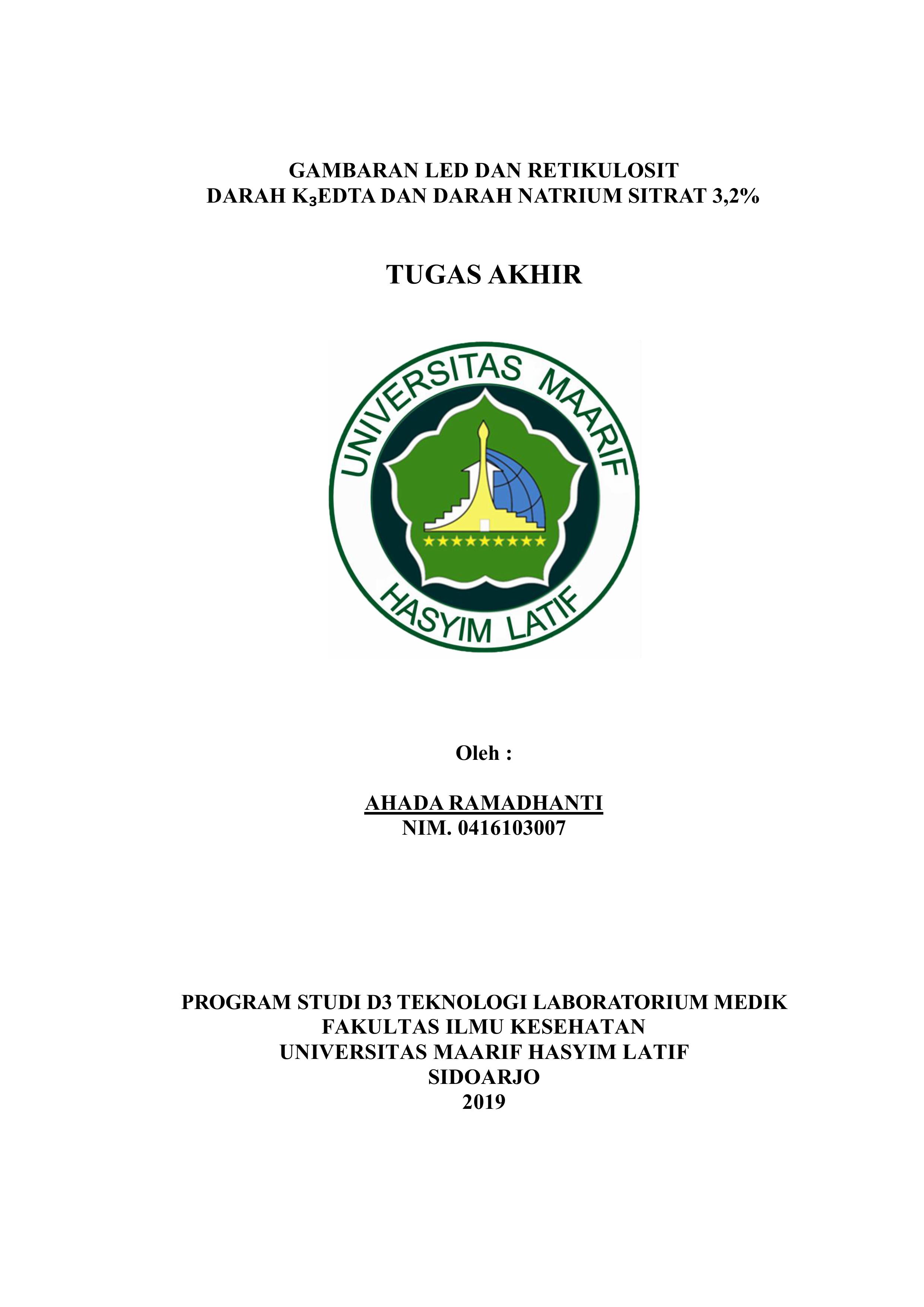 Kata Kunci : Laju Endap Darah (LED), retikulosit, K?EDTA, Natrium Sitrat 3,2%