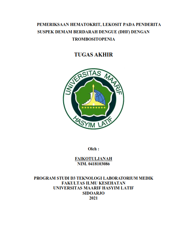 Kata kunci: Pemeriksaan Hematokrit, Suspek Demam Berdarah Dengue (DHF), Trombositopenia