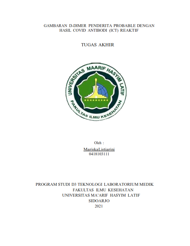 Kata kunci : Covid Antibodi (ict), D-dimer, Pasien Probable