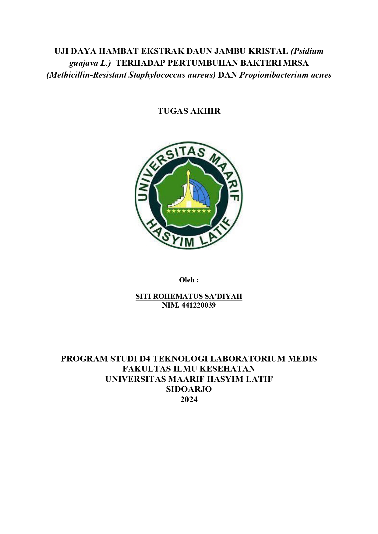 Kata Kunci : ekstrak, daun jambu kristal, MRSA, Propionibacterium acnes