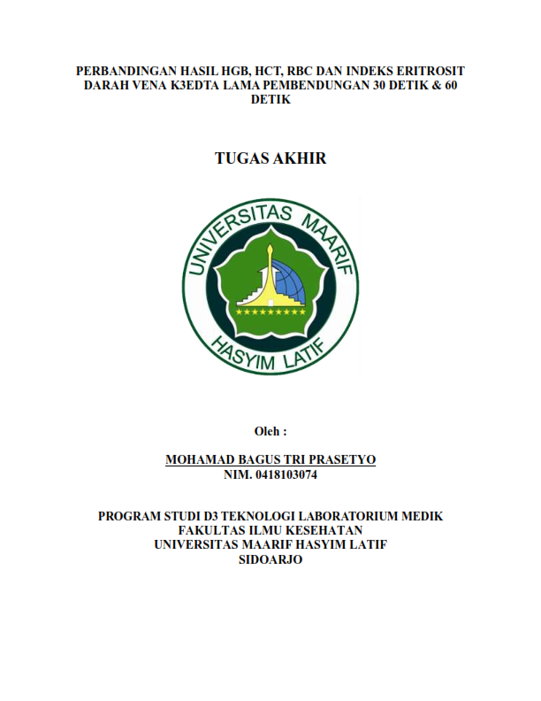 Kata Kunci: lama pembendungan, HGB, HCT, RBC, indeks eritrosit