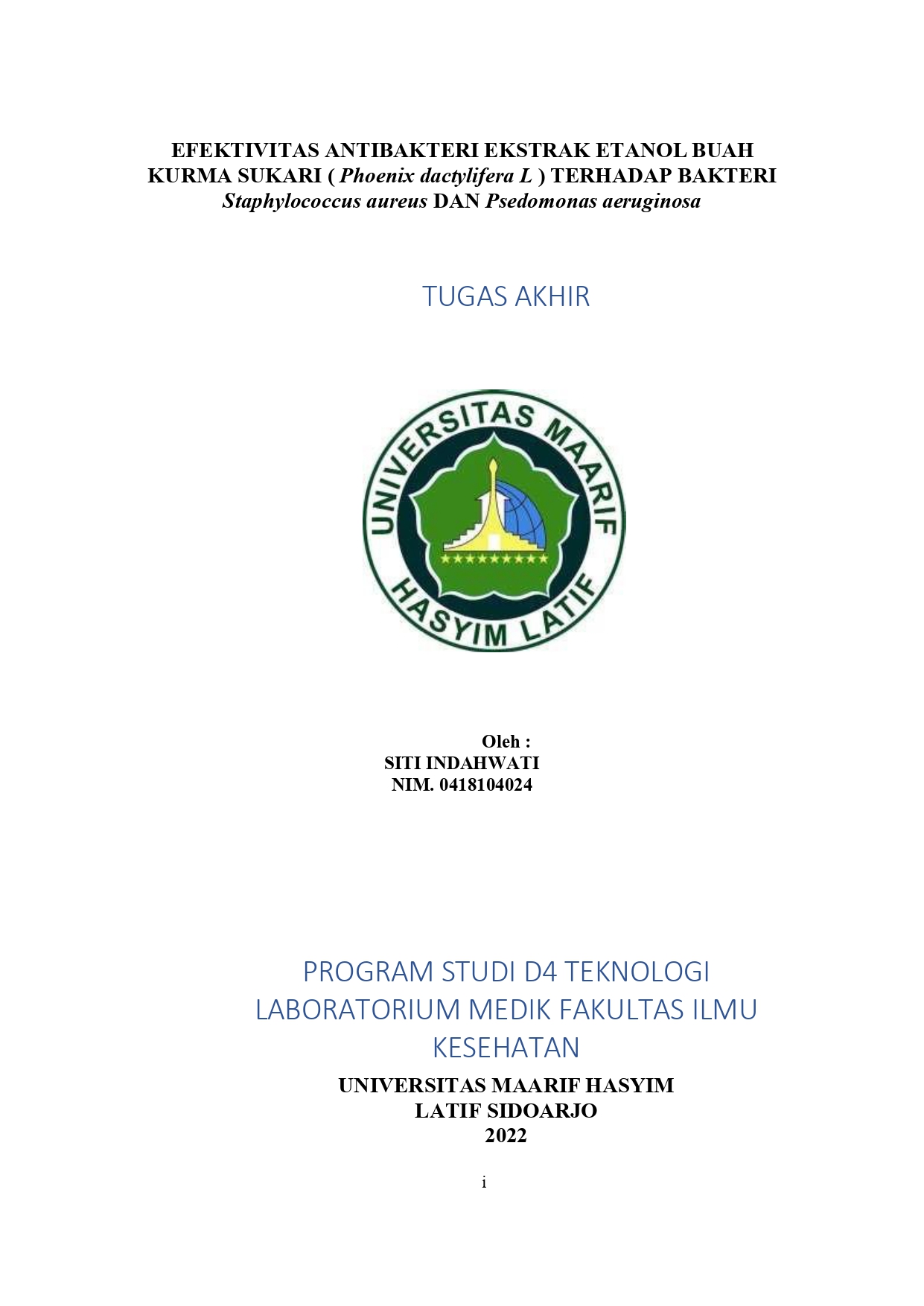 TUGAS AKHIR D-IV TEKNOLOGI LABORATORIUM MEDIS
