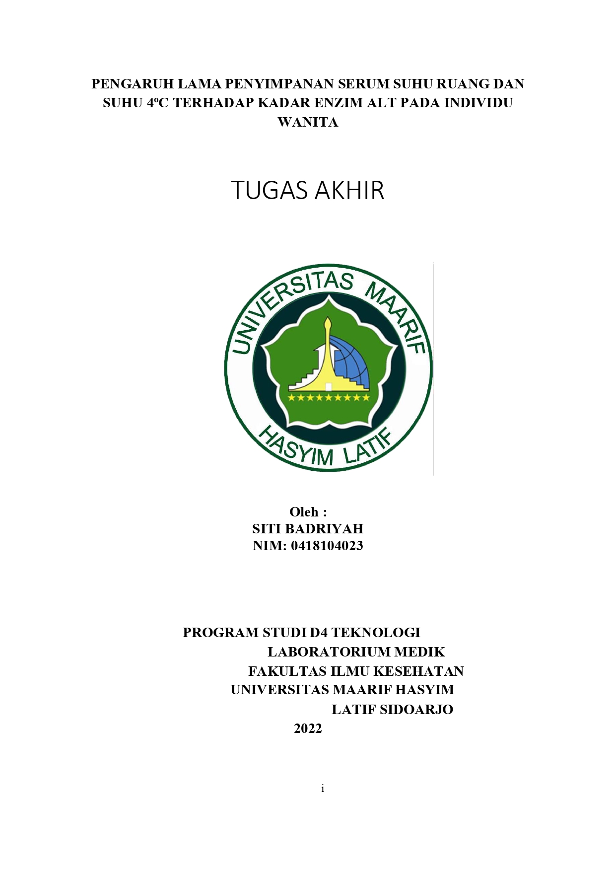 TUGAS AKHIR D-III TEKNOLOGI LABORATORIUM MEDIS